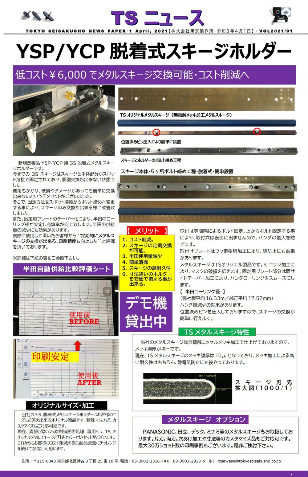 【TSニュース1号】YSP/YCP 脱着式スキージホルダー 低コストでメタルスキージへ交換可能! デモ機の貸し出しを行っています。こちらから是非お問い合わせください。 INFORMATION 一覧 CONTACT USお問い合わせ FAQよくある質問